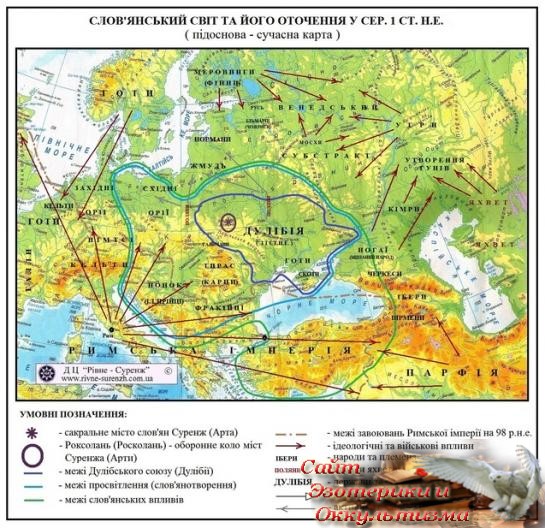 На картах воссозданы ареалы славянского просветления (по духовной силе, глубине) и указаны главные факторы, которые повлияли на эти ареалы. На картах использованы давние рахманские и роськие названия, которые бытовали в то время.