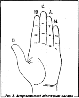 Оно соприкасается здесь с учениями астрологии и рассматривает средний палец как подчиненного мрачному Сатурну или Хроносу, в то время как другие пальцы приписываются другим планетам.