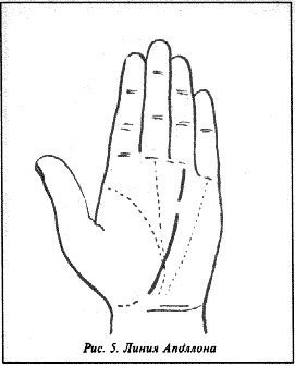 Выходя от пальца Аполлона или безымянного, она иногда оканчивается у основания большого пальца и запястья. По большей части она прерывается и распадается на различные штрихи.